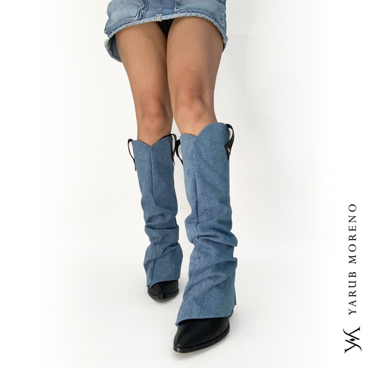 Botas de mujer, 2 en 1, color negro con capa de mezclilla