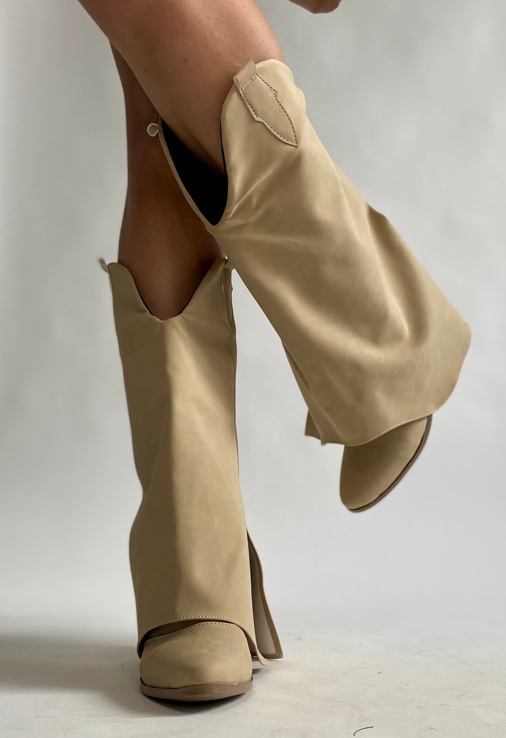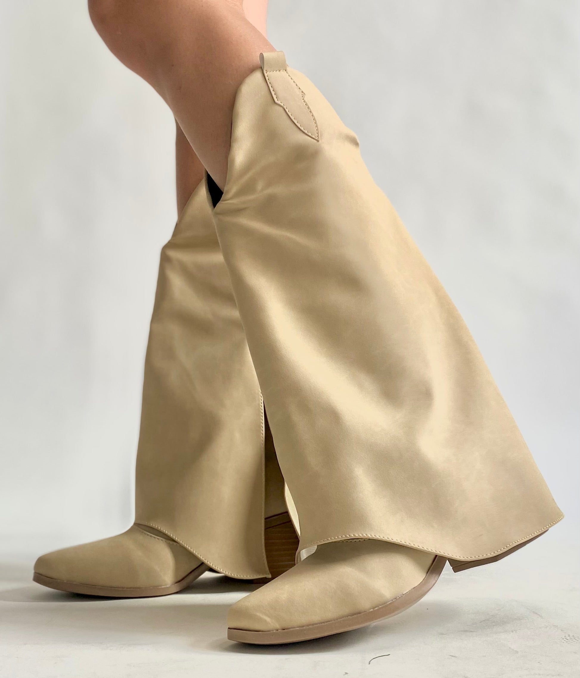 Bota con capa color beige para mujer. Es un estilo en tendencia en estilo y color. Es un diseño de bota ideal para resaltar tus outfits, aún siendo un outfit